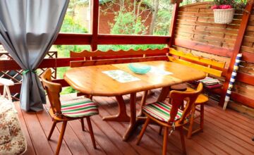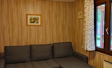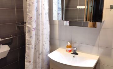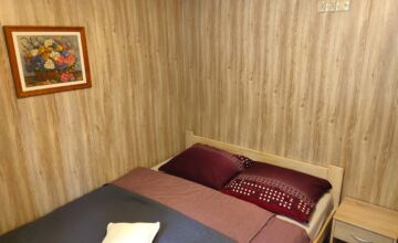 Piętro: 1 otwarty pokój z podwójnym łóżkiem, TV, toaleta, 1 pokój z 2 pojedynczymi tapczanami.