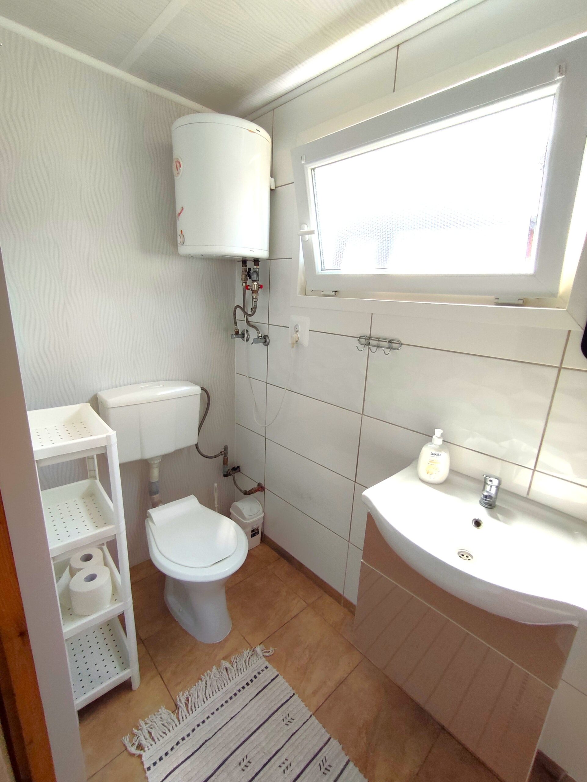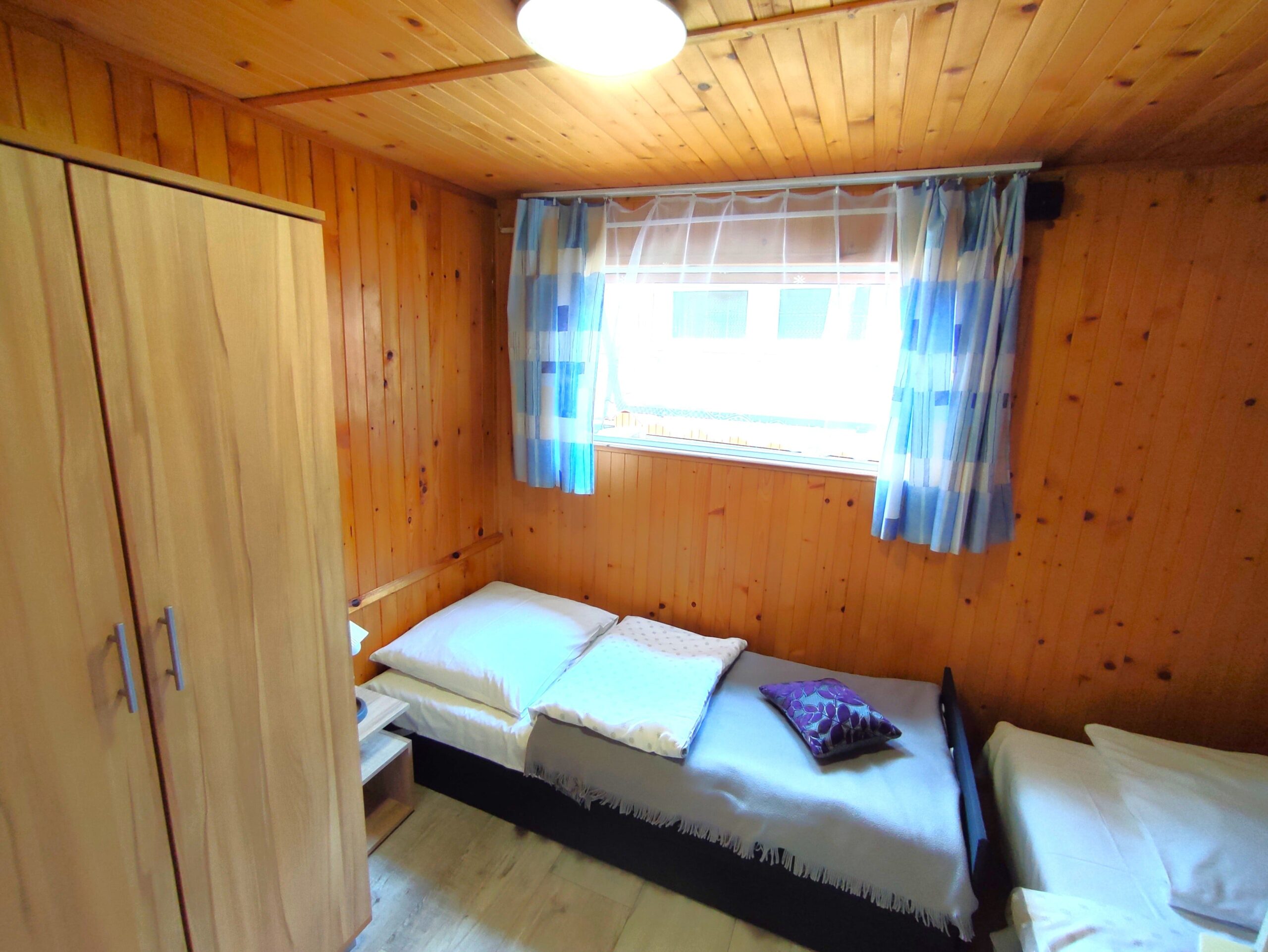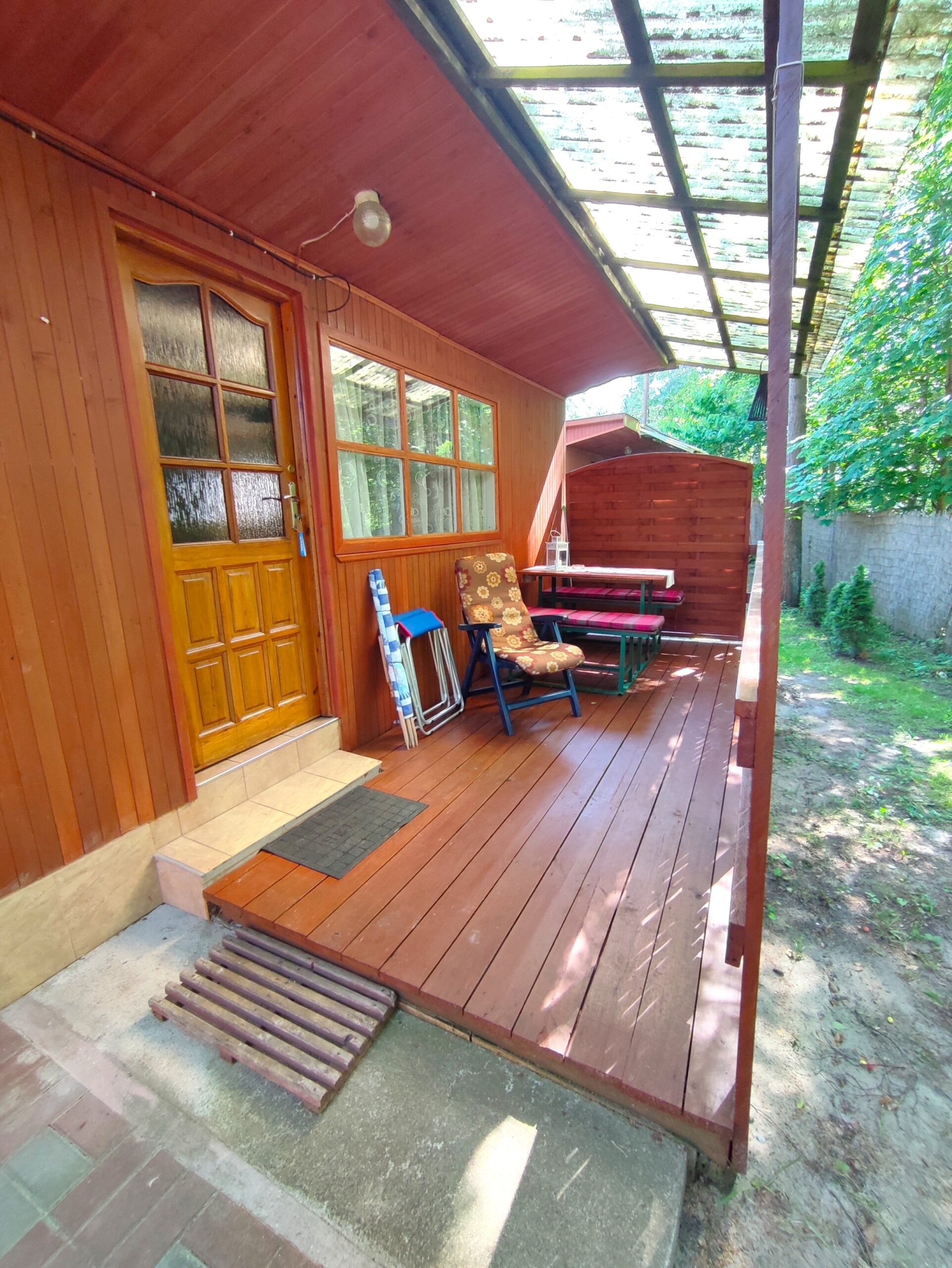 2x podwójne łóżko(wersalki) i 1x pojedyncze (leżanka), aneks kuchenny (kuchenka gazowa, podstawowe naczynia, lodówka), łazienka z prysznicem, TV. Parawan i 2 leżaki plażowe. W cenie: media, pościel, parking. Ręczniki we własnym zakresie.